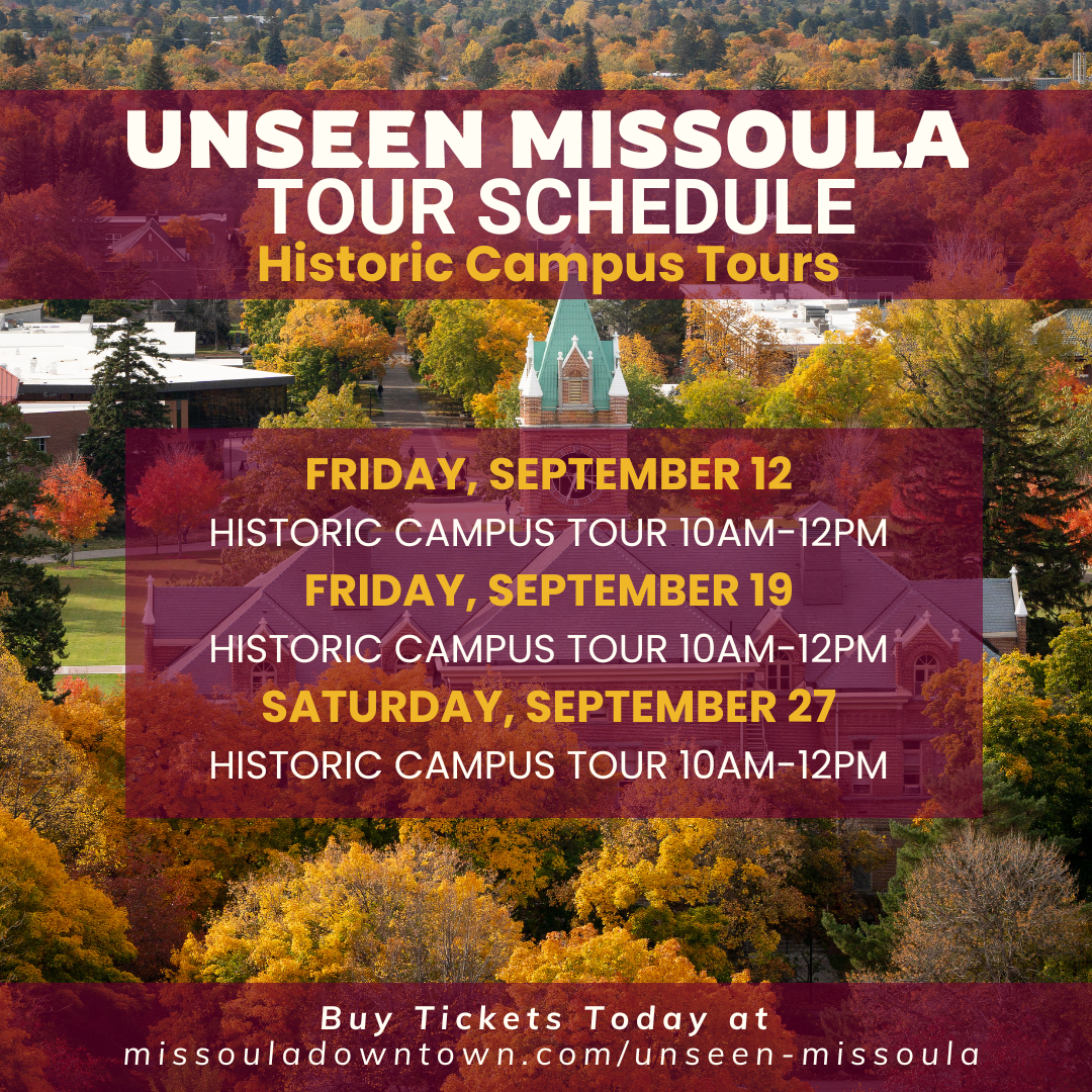 This month, the Unseen Missoula program is offering several historical tours of UM Campus. Students from our public history program and classes developed this tour, which incorporates Native American history, architectural history, campus protests, underground tunnels and skydiving, among other things! The tour on September 19th (Parents Weekend) is FREE! You can get tickets here.